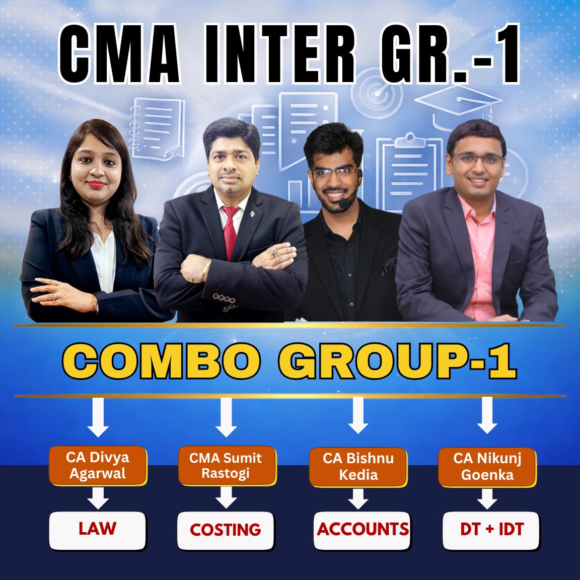 CMA Inter Group-1 Full Course (Combo) By CMA Sumit Rastogi, CA Bishnu Kedia, CA Divya Agarwal, CA Nikunj Goenka