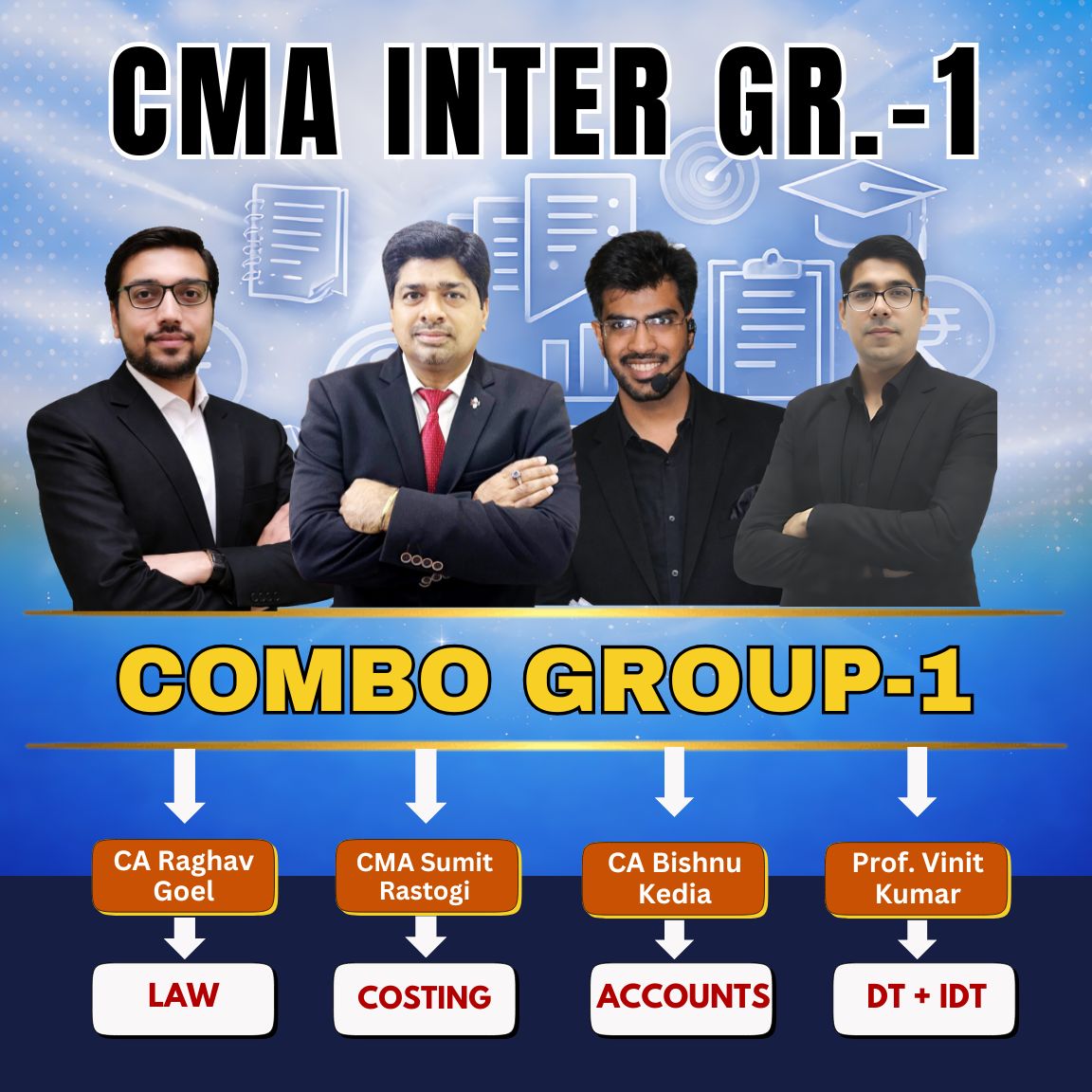CMA Inter Group-1 Full Course (Combo) By CMA Sumit Rastogi, CA Bishnu Kedia, CA Raghav Goel, Prof. Vinit Kumar