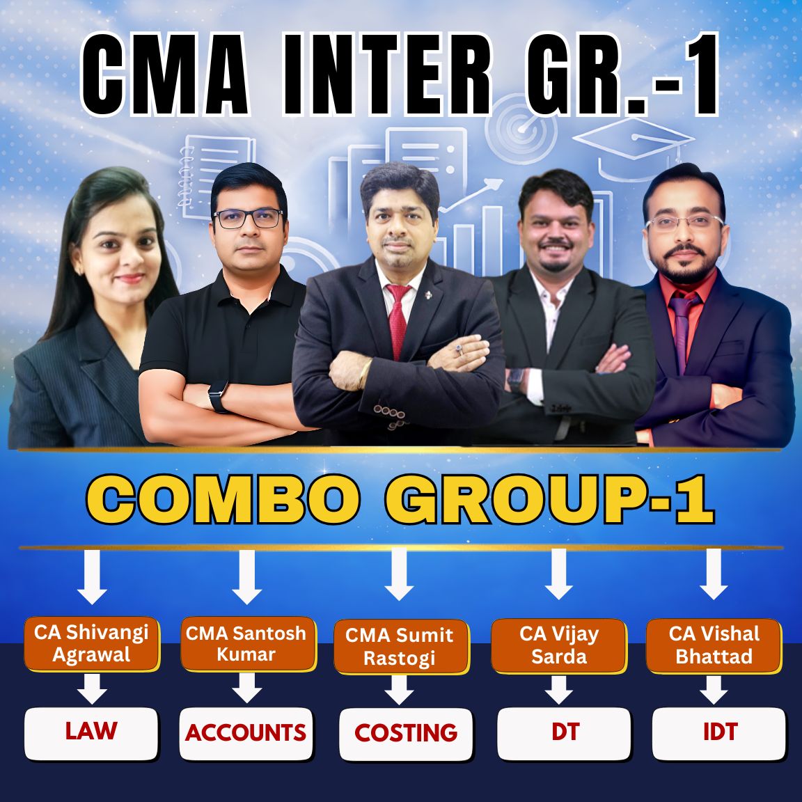 CMA Inter Group-1 Full Course (Combo) By CMA Sumit Rastogi, CMA Santosh Kumar, CA Shivangi Agrawal, CA Vijay Sarda, CA Vishal Bhattad