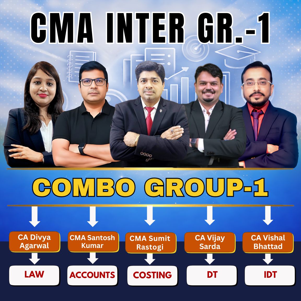 CMA Inter Group-1 Full Course (Combo) By CMA Sumit Rastogi, CMA Santosh Kumar, CA Divya Agarwal, Prof. Vinit Kumar
